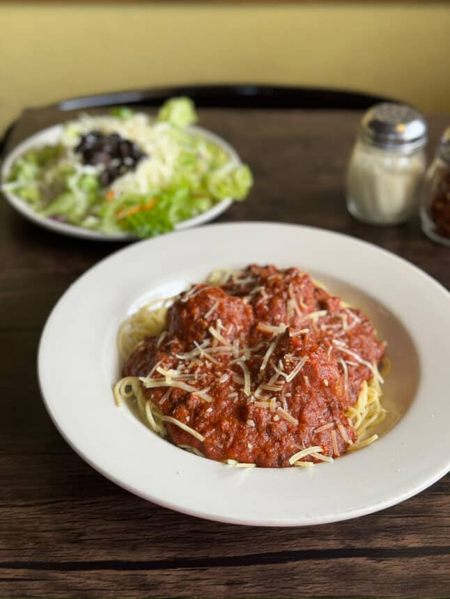 Cheesy pizza from Sparta's Pizza and Pasta House in Bothell, Washington.